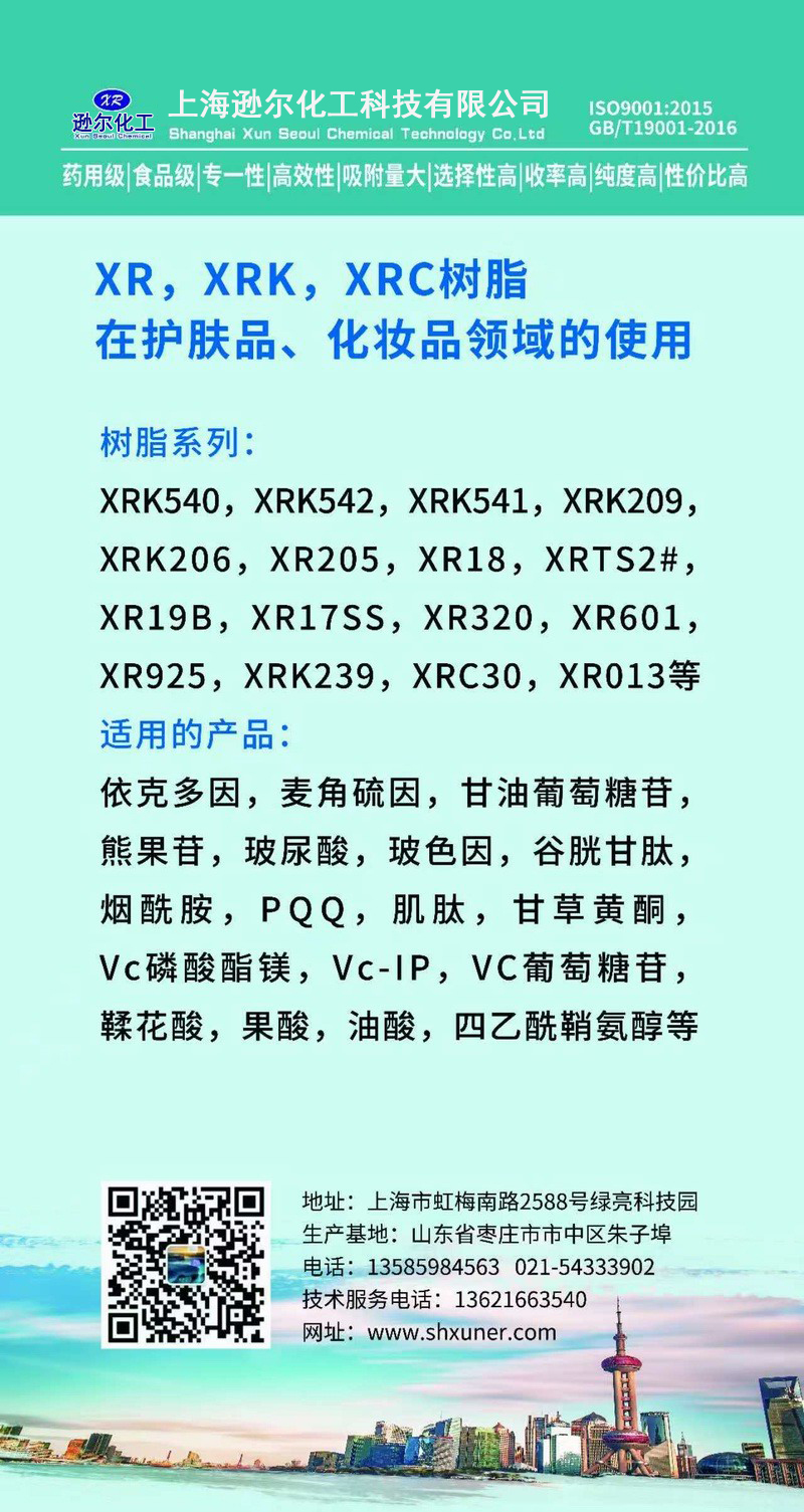 上海遜爾化工科技有限公司是上海市新型的高分子材料研發、生產、應用相結合的高科技公司。公司具有完善的自主知識產權創新體系,與華東理工大學,江南大學,浙江工業大學等科研應用平臺合作從事離子交換與吸附樹脂研制、生產和生物醫藥合成與分離工藝,三廢處理工藝開發設計工作。